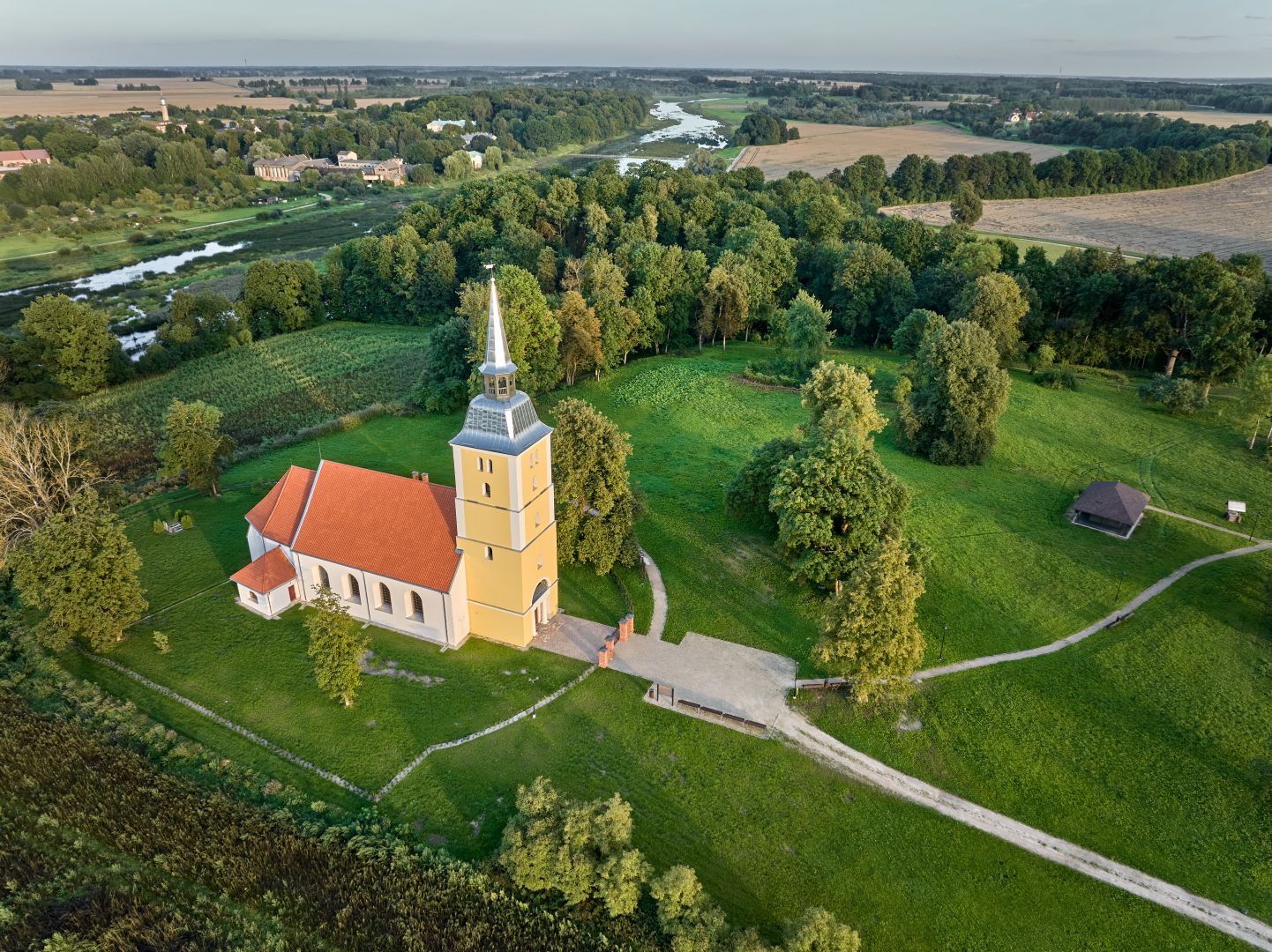 A cultural space has been arranged in the renovated Mežotne church, while the mezzanine floors of the tower houses an exposition dedicated to the historical events on the Mežotne hillfort. Reconstructions of ancient Semmigalian archaeological costumes and jewelry can also be viewed. Those interested have the opportunity to climb the tower and see the Zemgale plain. There is a pedestrian bridge over Lielupe (350 m) near the hillfort, which connects the hillfort with the territory of Mežotne Palace, but it is available from May to mid-October.