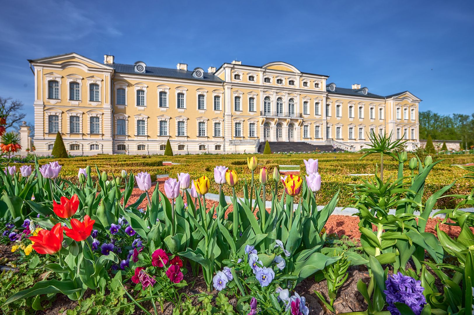 Rundāle Palace ensemble is the most outstanding monument of baroque and rococo architecture and art in Latvia, the French garden of the palace spreads over an area of 10 hectares.