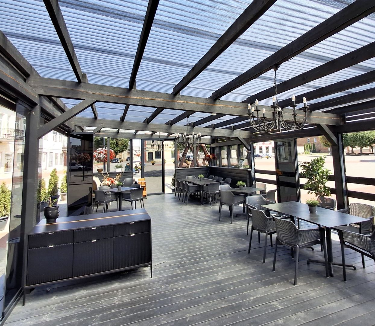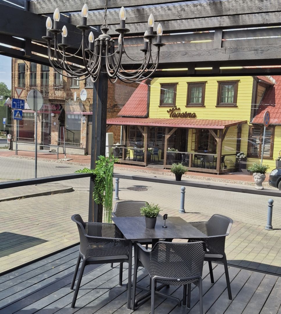 The cafe is located in a charming two-story wooden building in the old town, with appropriate interior. A large outdoor terrace is available during the summer season. Capacity is up to 35 people.